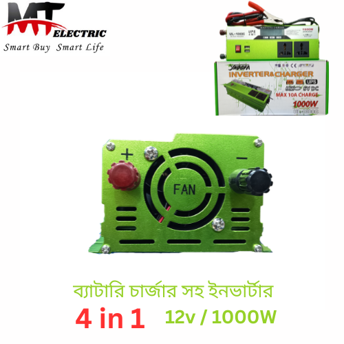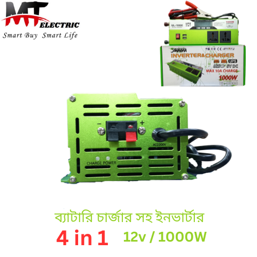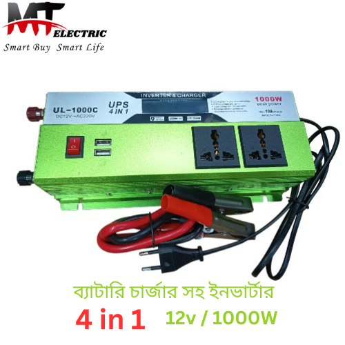 🔥 বিদ্যুৎ চলে গেলেও চিন্তা নেই — এখনই নিন শক্তিশালী 12V 1000W Inverter & Charger (4 in 1 UPS)